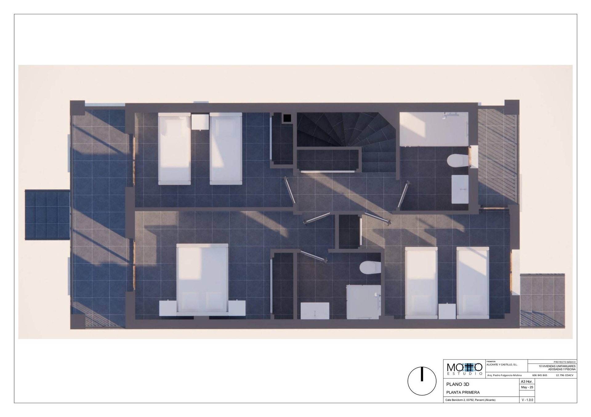 This development features 10 identical townhouses arranged in a line along a communal swimming pool, with townhouse number 7 offering a balance of privacy and convenience. The complex is located just a 2-minute walk from pharmacies, medical centres, and supermarkets, and 4 minutes from CEIP el Carrascal school.