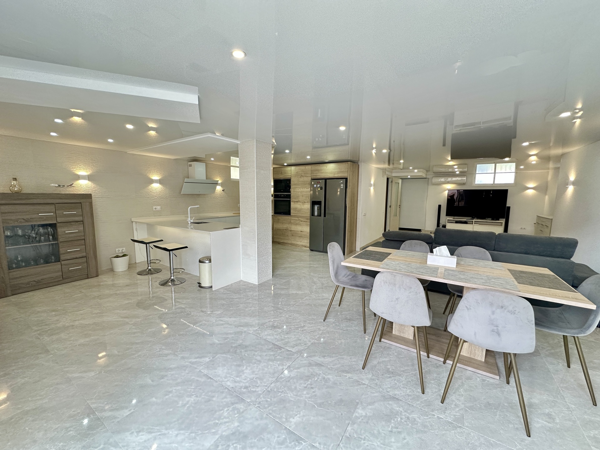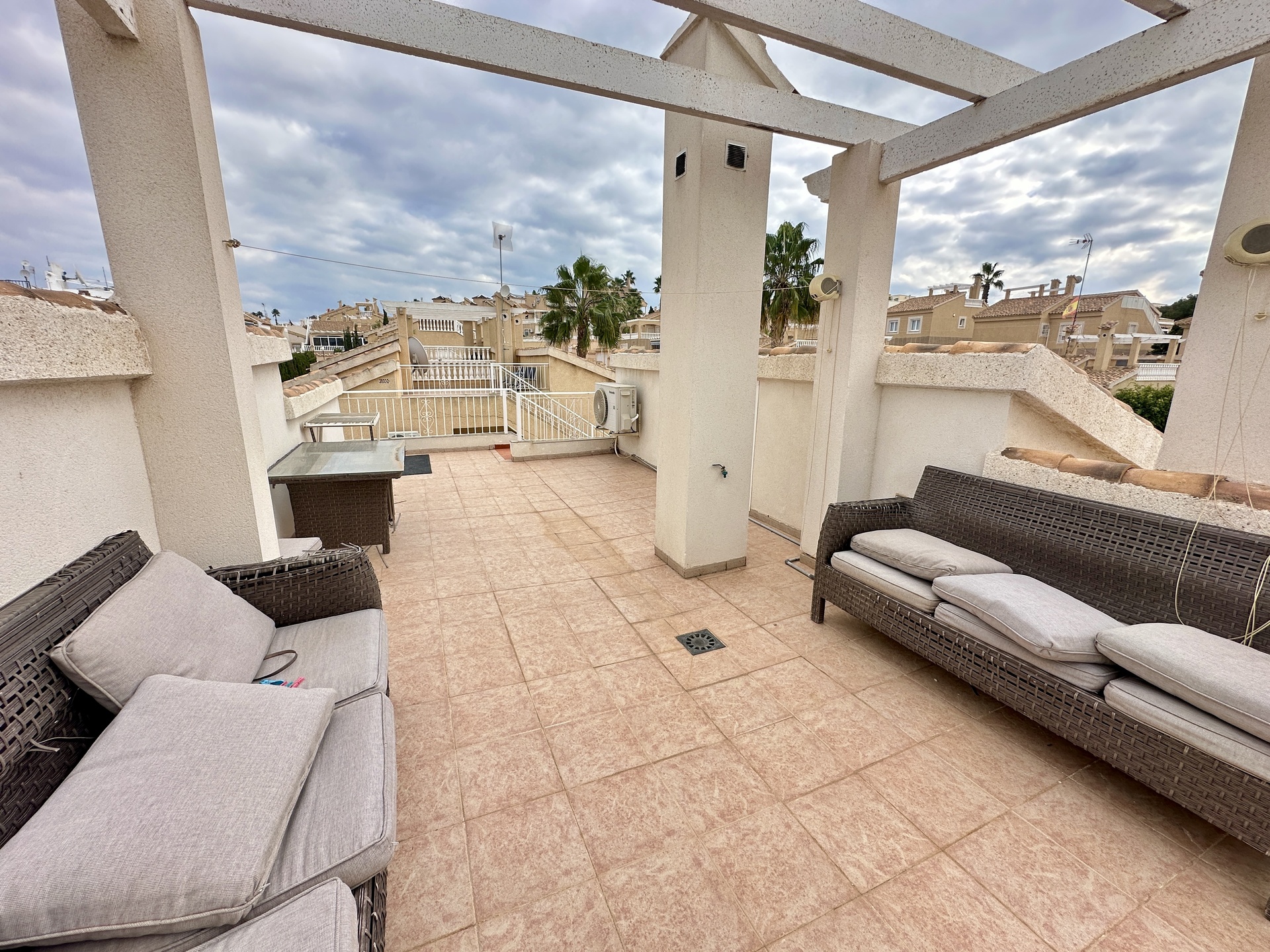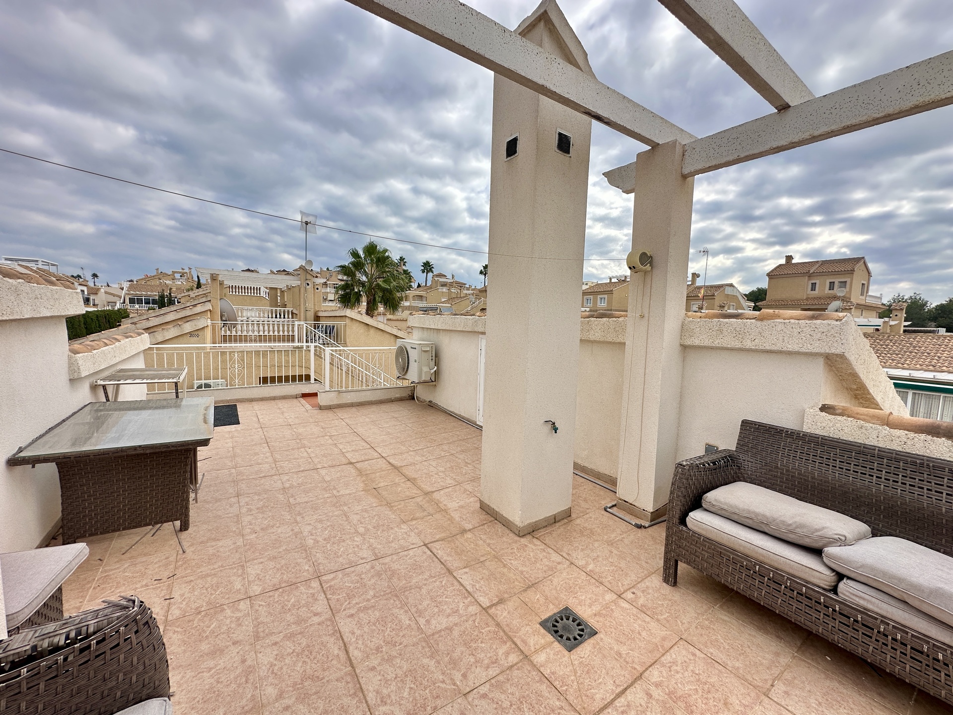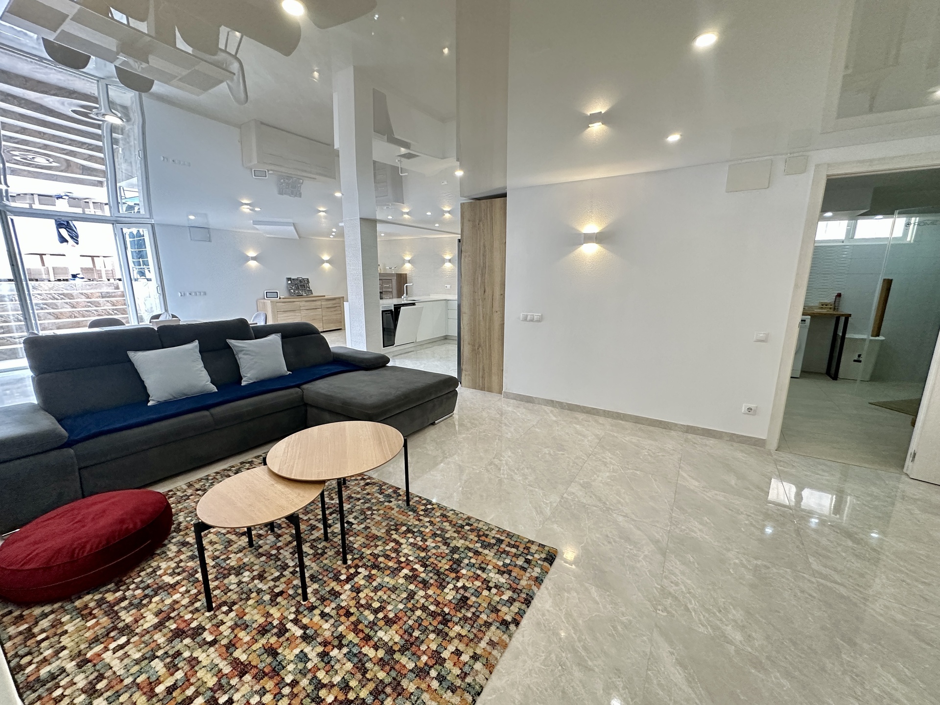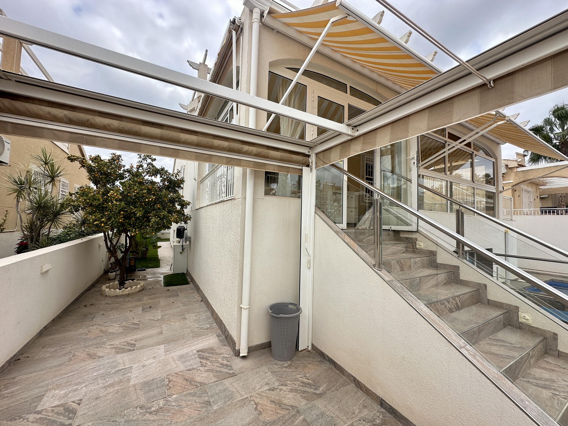 Upstairs, the rooftop solarium offers a great spot to unwind and sunbathe. There’s also a glazed-in terrace, perfect for year-round use. The property is sold fully furnished, so you can move in and start enjoying it right away.