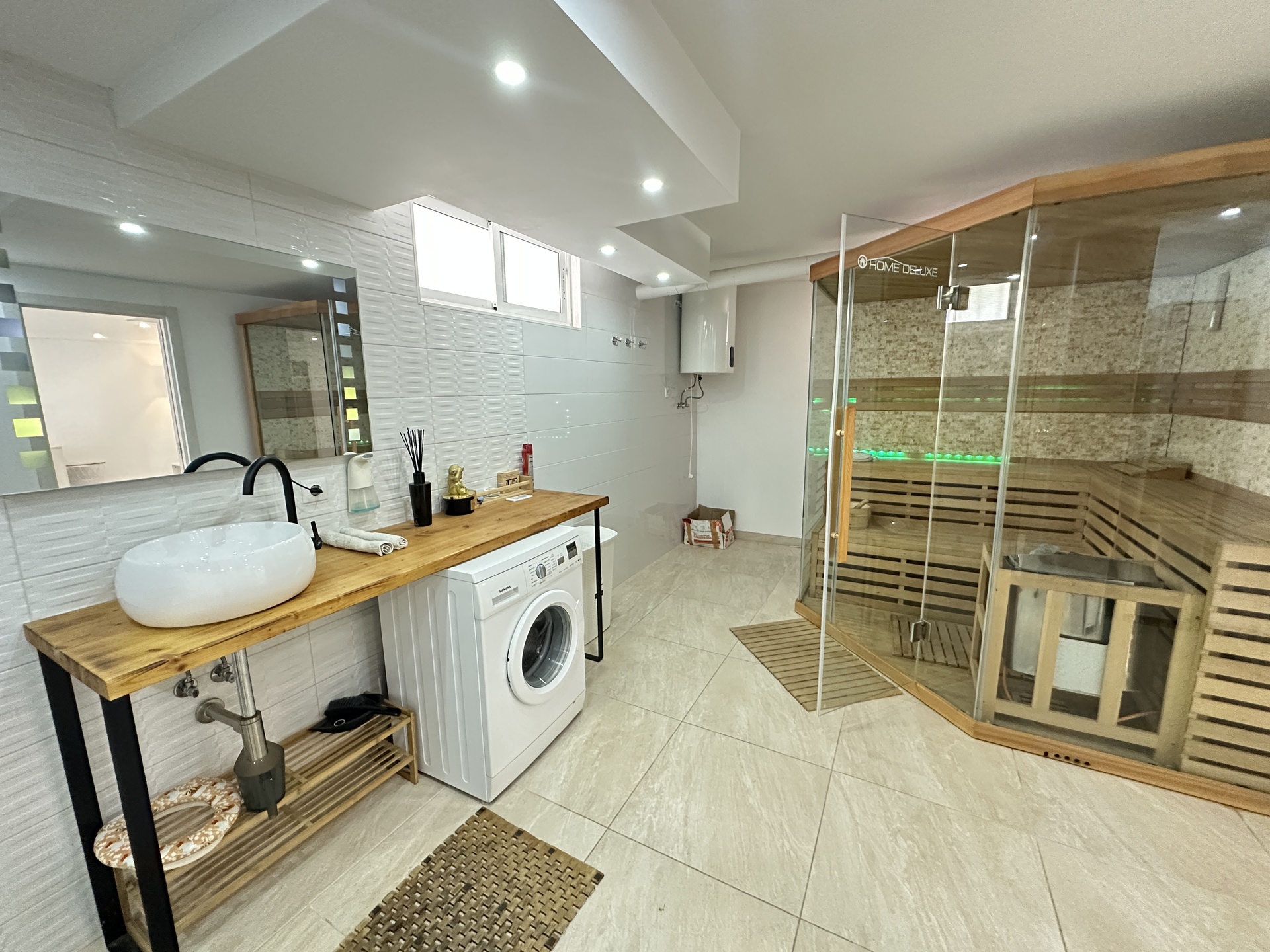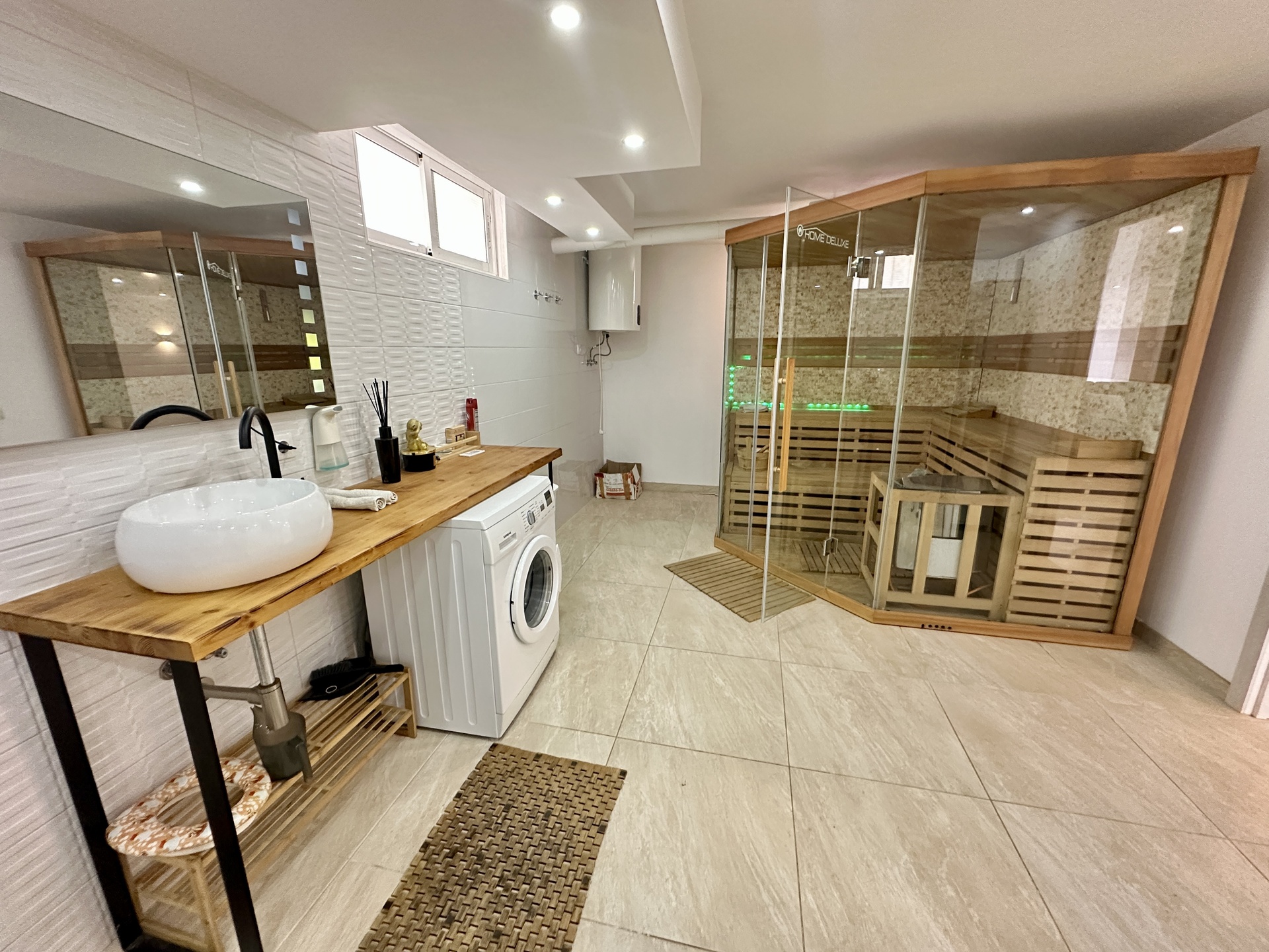 One of the standout features is the large renovated underbuild, accessible from both inside and outside the villa. This flexible space includes a fully fitted kitchen, a living/sitting area, a bathroom, and even a sauna—ideal for guests, hobbies, or a private relaxation zone.