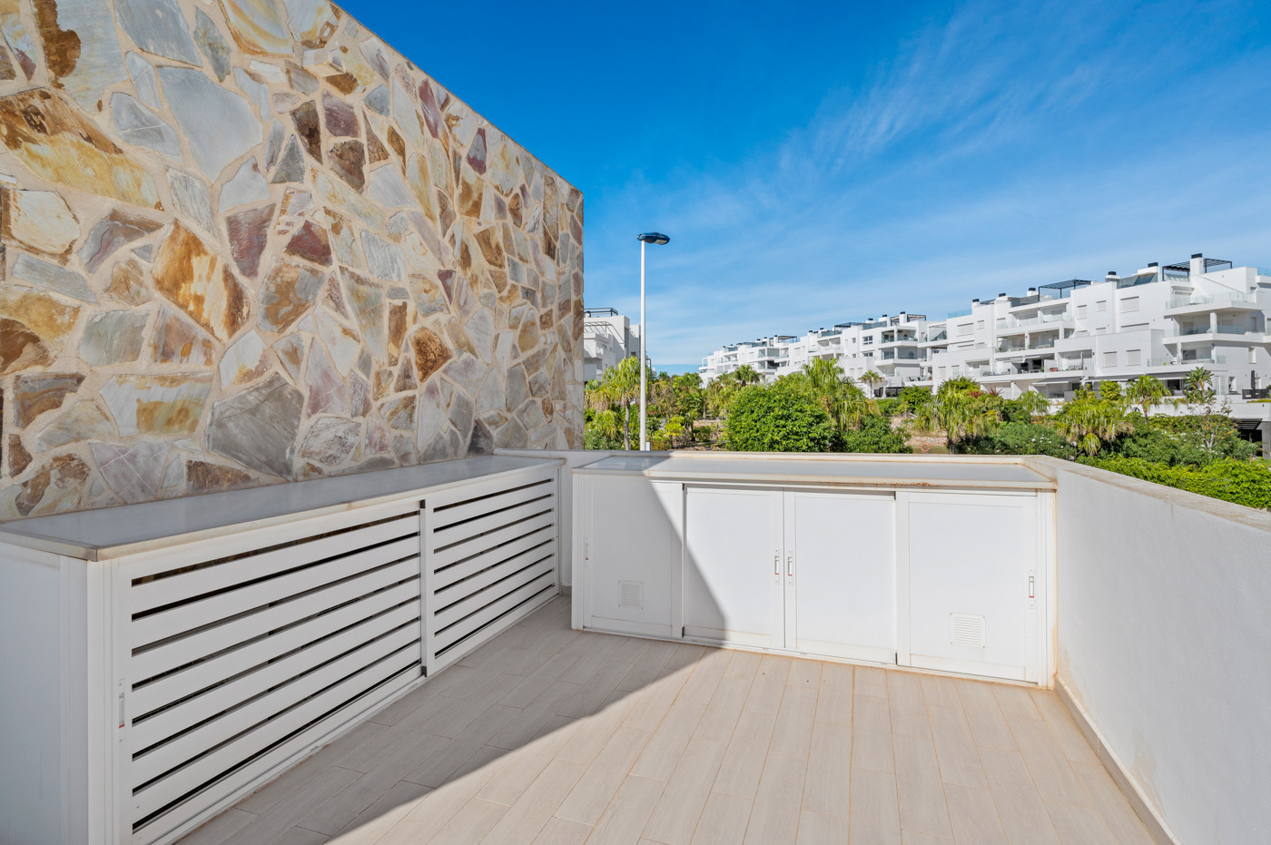Bungalow for sale in Torrevieja, TorreviejaWelcome to this beautiful and modern corner townhouse that combines style, comfort and functionality in the best way. Here you will get a home that stands out - both with its well-thought-out floor plan and its unique plot with lots of privacy.The homeThe house offers 3 good bedrooms and 2 modern bathrooms, where everything is kept in bright and inviting materials. The home appears extremely well-maintained and ready to move in, so you can move straight in and start enjoying life under the sun. Under the house you will find a full basement that has not yet been utilized - perfect as a future fitness room, wine cellar, home theater or just extra storage space.The outdoor area - pure luxuryOutside, a fantastic private outdoor area awaits, designed for relaxation and socializing. The private swimming pool can be heated and offers a built-in swim trainer - ideal for exercise all year round. In addition, there is a seating area with air jets (semi-jacuzzi), where you can relax and enjoy the bubbles after a swim. There is also an outdoor shower so you can cool off if you don&039;t prefer to jump in the pool.The plot has a lovely garden area, and the large pergola forms the frame for a delicious outdoor kitchen with both a sink and a refrigerator - perfect for summer evenings with family and friends. Extra storage cabinets in the garden provide practical storage for cushions and equipment.Comfort and convenienceThe property includes two parking spaces in the underground parking garage and a storage room of approx. 6.6 m². Here you will find everything you need - both for everyday life and holiday life.LocationThe home is located in a quiet and attractive area close to all amenities - supermarkets, cafes, restaurants and shopping. The southeast-facing location ensures sun most of the day, and the area is known for its pleasant climate and relaxed atmosphere.In short:A modern corner townhouse with heated private pool, fantastic outdoor area and endless potential in the basement – perfect for those who dream of comfort, quality and a southern lifestyle with a little extra luxury.