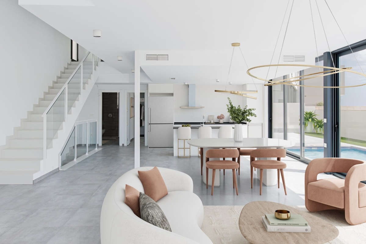 Detached Villa for sale in Gran Alacant, ElcheThis practical villa is a modern, bright and spacious design house with straight lines, 169 m2 with 4 bedrooms, where the forms arise from the search for space, in an advanced state of construction.