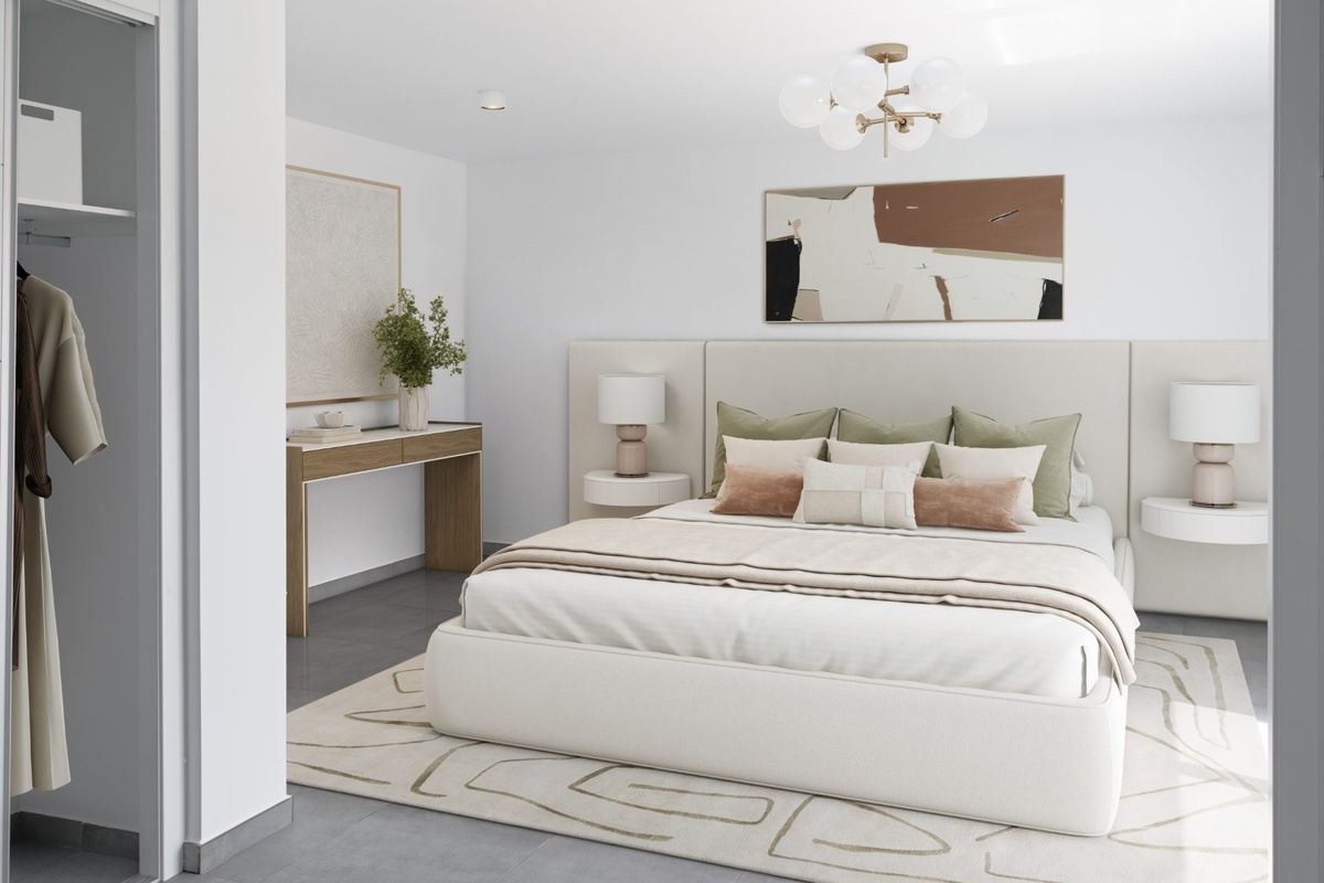 The kitchen has a customisable layout . The property has an en-suite bedroom with dressing room. It is characterised by the huge windows, whose main objective is to capture as much natural light as possible, thus achieving a comfortable atmosphere in the house. With a double height layout.This model is built on plots from 395m2, next to a wide range of services such as a shopping centre, school, medical services, banks, etc.