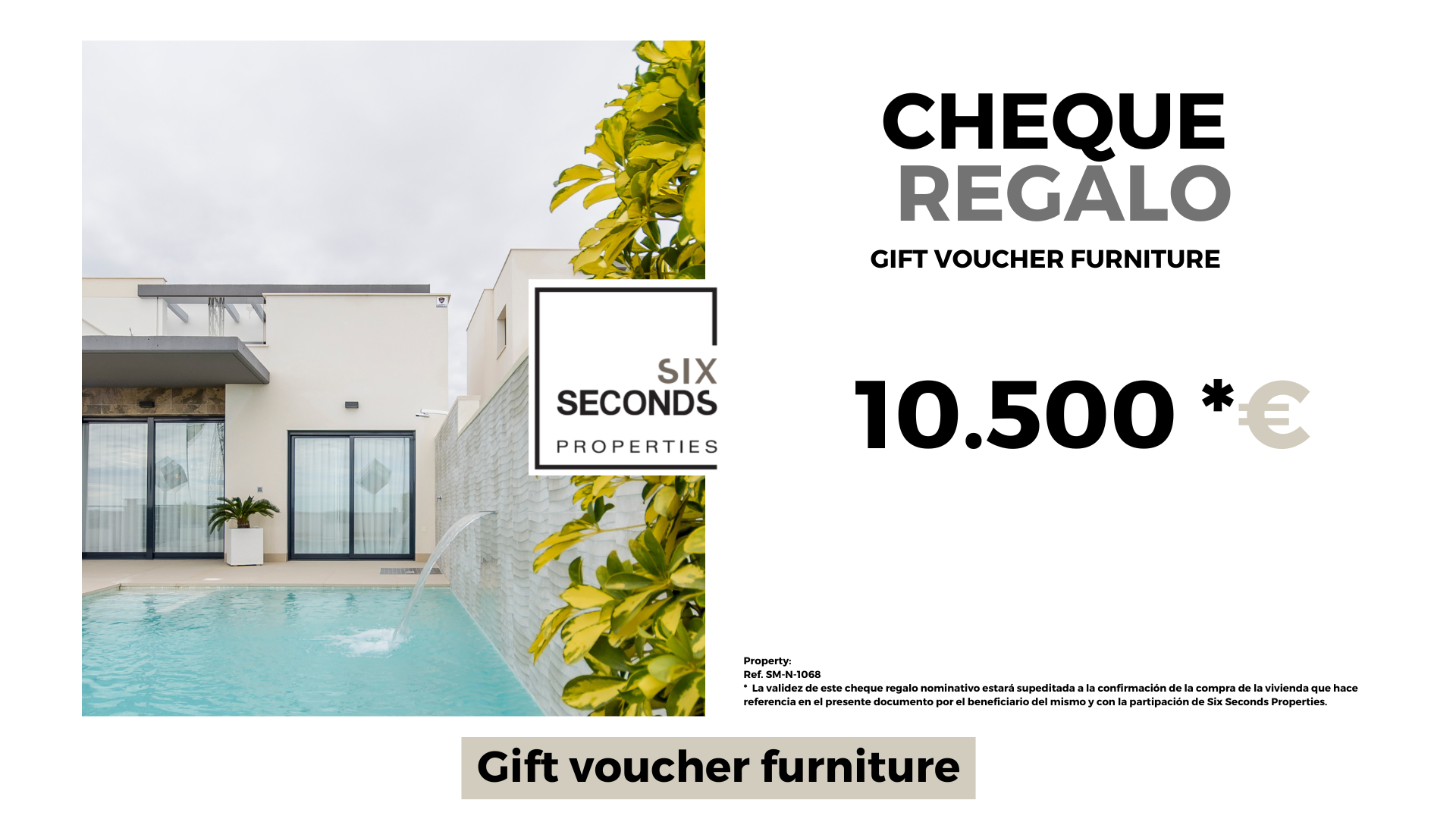At Six Seconds Properties (965059685) we help you turn your new property into the home of your dreams, giving you a furniture gift voucher for €10,500 and a technical visit from the design department to the home, where our technical team will advise you on the possibilities of improvement and decoration of your property. Totally free!!