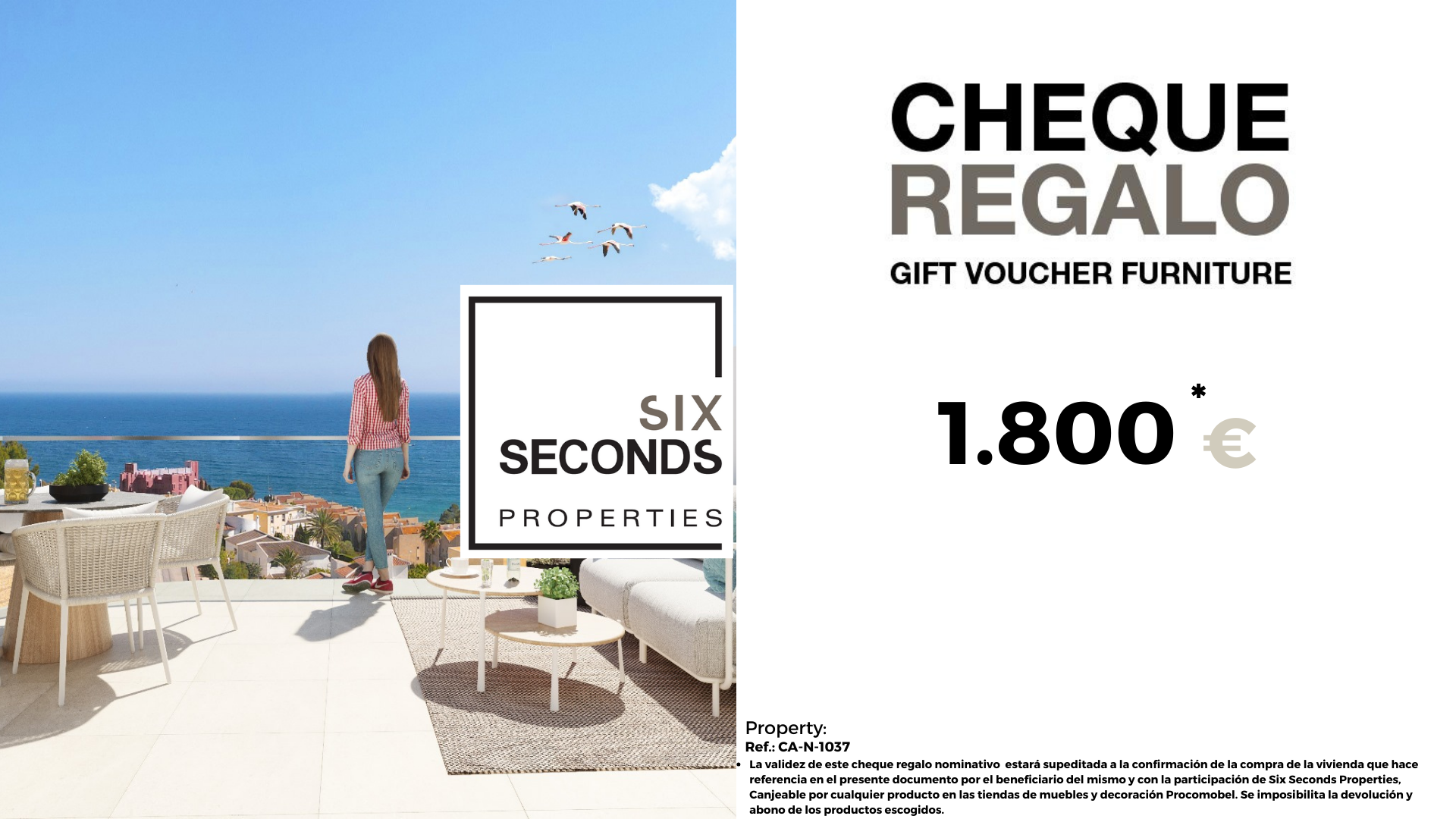 At Six Seconds Properties we help you turn your new property into the home of your dreams, giving you a gift voucher for furniture worth €1,400 and a technical visit to the home , where our technical team will advise you on the possibilities of improving the property. living place. Totally free !!