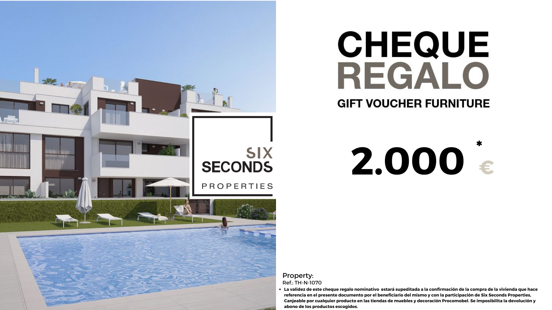 At Six Seconds Properties we help you turn your new property into the home of your dreams, giving you a gift voucher for furniture worth €2000 and a technical visit to the property, where our technical team will advise you on the possibilities of improving the home. Totally free!