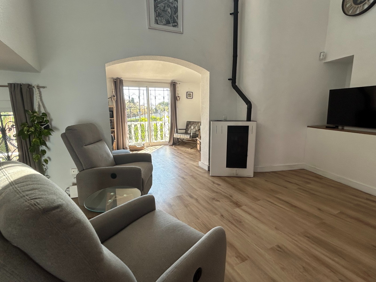 The villa boasts a south-facing plot of 700 m², surrounded by a perfectly maintained garden that guarantees privacy and serenity. The property is spread over two floors, offering a spacious and functional layout. On the ground floor, there are three bedrooms, one of them en-suite, along with a spacious living room with high ceilings, pellet stove and air conditioning to ensure maximum comfort all year round. The kitchen, fully equipped with modern appliances, is complemented by a separate laundry room.