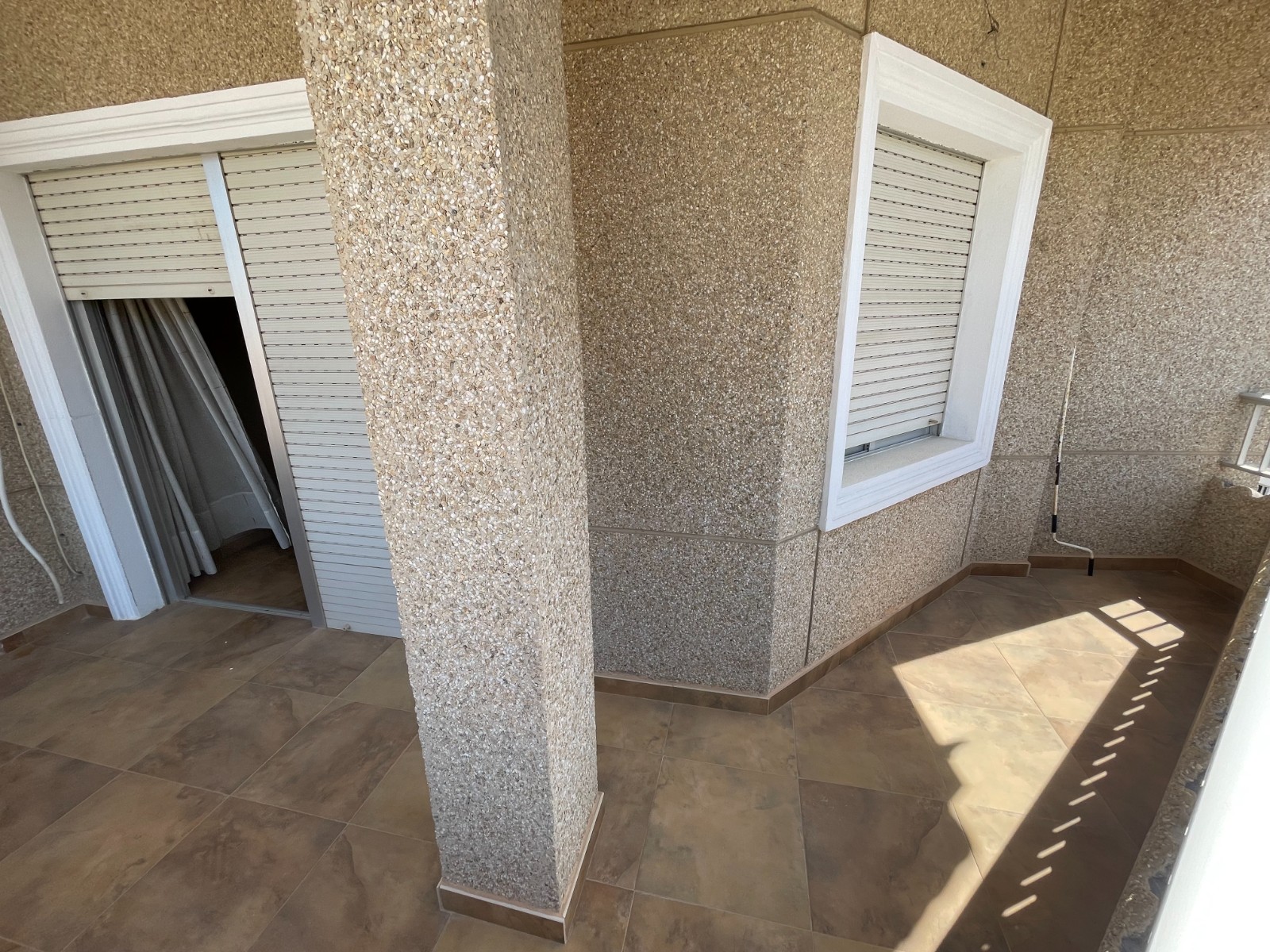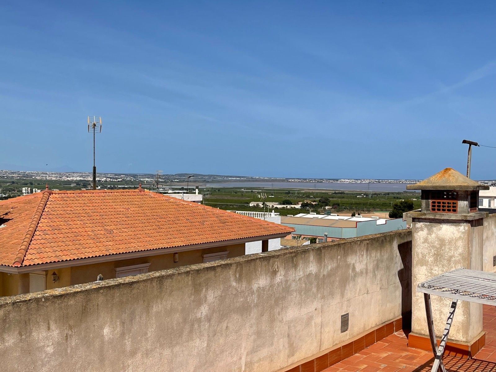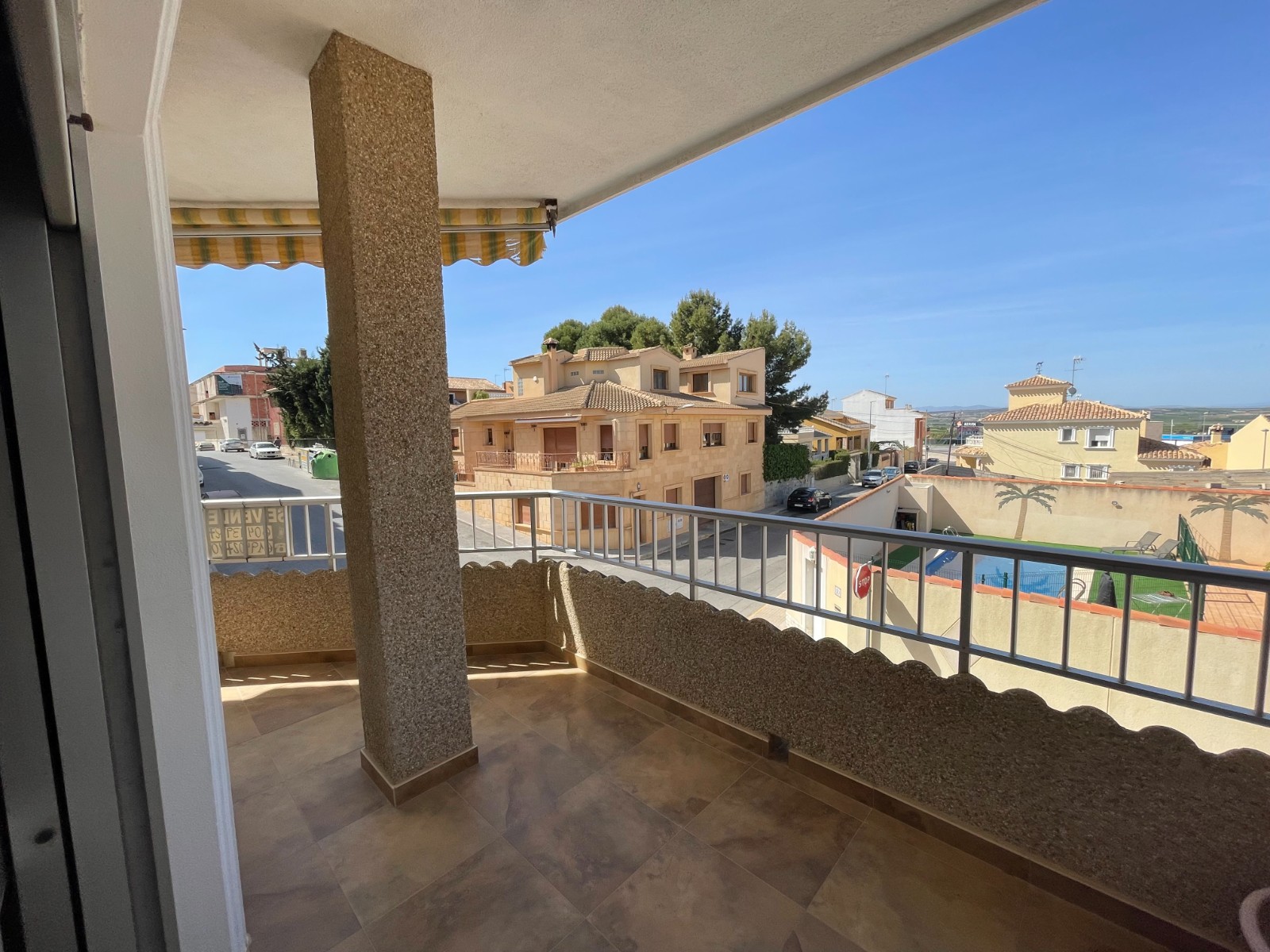 Terraced house in San Miguel de Salinas.Ground floor has a spacious living room with fireplace, entrance for several cars, bedroom and bathroom.The main house is accessed by stairs. Here there is a living room with fireplace and bright living room with access to the terrace.First floor has two bedrooms, bathroom with shower, kitchen with access to the patio/laundry. The house has its own solarium. It is sold furnished.