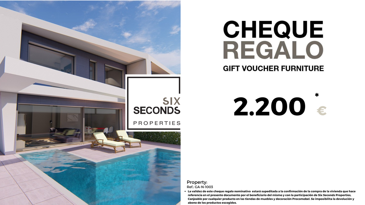 At Six Seconds Properties, we'll help you turn your new property into the home of your dreams by giving you a €2,200 furniture gift voucher and a technical visit to the home, where our technical team will advise you on home improvement options. Completely free!