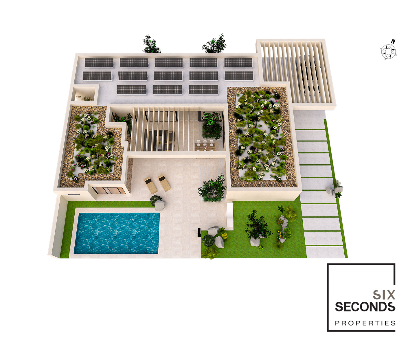 The designers have paid great attention to the most efficient use of the available space, in line with modern Northern European standards. The L-shaped building design represents a practical square footage layout and provides maximum privacy from neighbors. We use the unique and innovative SISMO construction system, which guarantees that your property has a very high efficiency rating and high acoustic and thermal insulation, in other words, maintaining the optimal temperature and without noise. Additionally, it eliminates other problems associated with traditional construction methods, such as cracks and moisture problems.