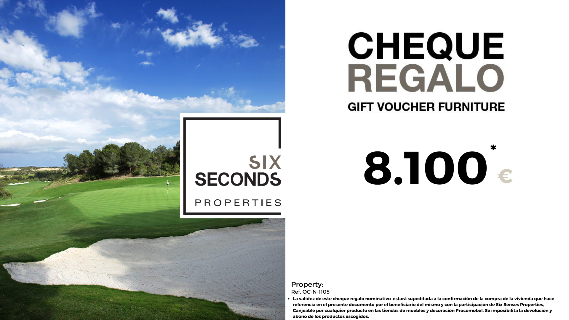 At Six Seconds Properties (965059685) we help you turn your new property into the home of your dreams, giving you a furniture gift voucher for €8,100 and a technical visit from the design department to the home, where our technical team will advise you on the possibilities of improvement and decoration of your property. Totally free!!