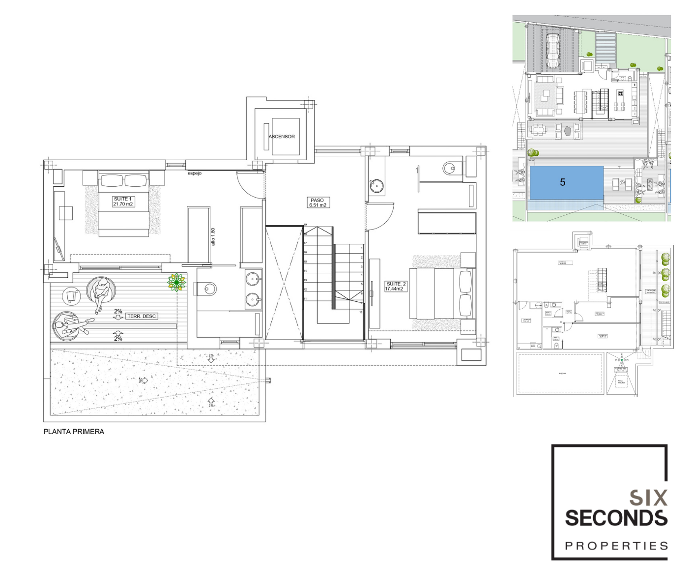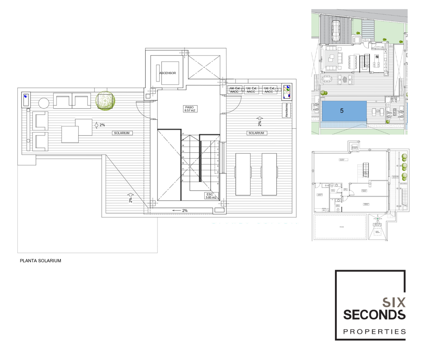 Two-storey villas with solarium, interior garden with a large mezzanine, infinity pool and private parking. Each villa is equipped with an elevator.