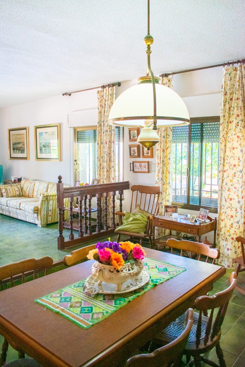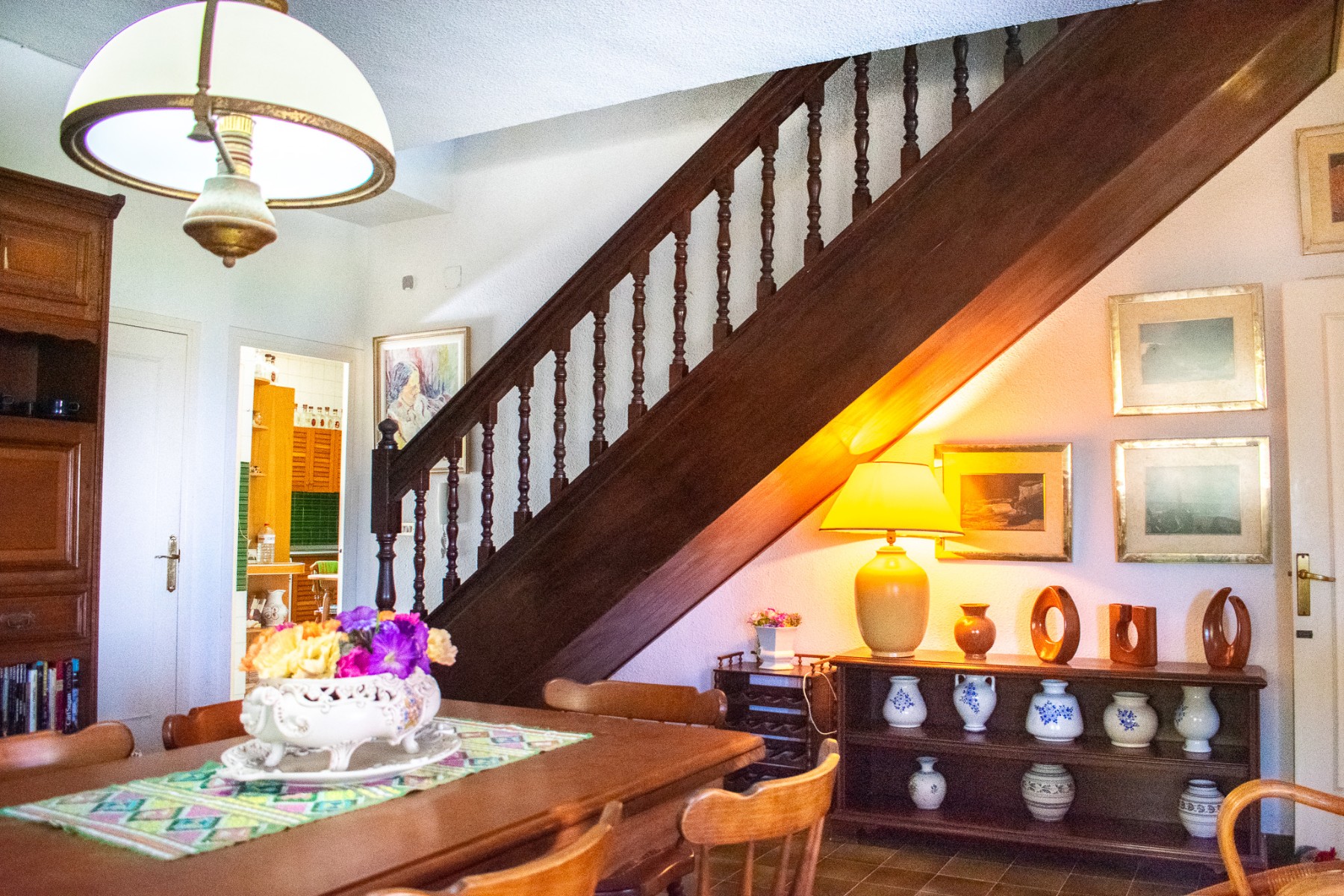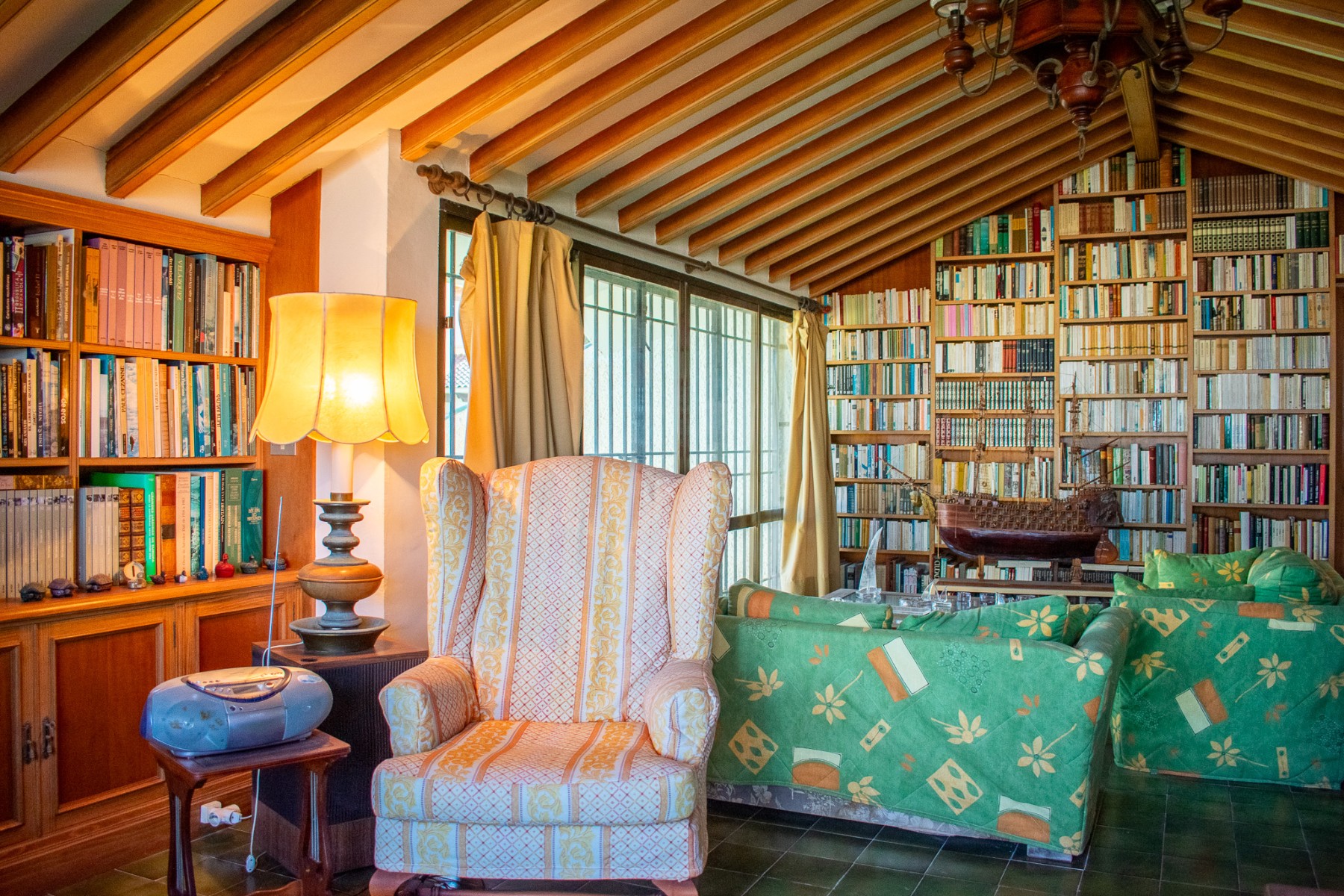 This villa has 5 spacious bedrooms , built-in wardrobes throughout the house and 3 elegantly designed bathrooms . On the ground floor, it has a large living room perfect for family gatherings and entertainment, as well as 4 bedrooms that allow you to live without having to climb stairs. In addition, the independent kitchen is fully equipped . On the upper floor, there is an office - library and a living room with spectacular views of the sea. It also has an extra room with a private terrace , bathroom , and attic to store personal belongings. From almost any point on the property, you can enjoy beautiful views of the sea , turning each sunrise and sunset into a natural spectacle from the comfort of your home.