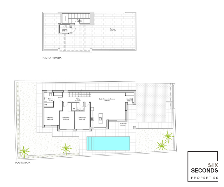 Each property offers the convenience of having all the main rooms on one floor, with direct access to the garden and private pool. In addition, it has a large solarium of more than 100 square meters with magnificent views of Benidorm. With three bedrooms and two bathrooms, these properties are designed to enjoy the Mediterranean breeze both day and night.