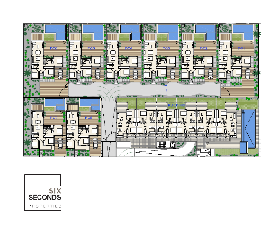 Each villa offers a spacious living space of 108 or 220 m², distributed across 3 bedrooms and 2 bathrooms, where comfort and style merge to create a perfect home. They also feature a private outdoor space with a serene pool, ideal for relaxing or entertaining guests, and private parking.