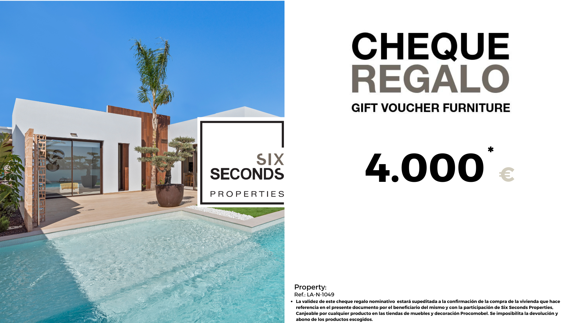 At Six Seconds Properties, we help you turn your new property into the home of your dreams by giving you a €4,000 gift voucher for furniture and a technical visit to the home , where our technical team will advise you on home improvement options. Completely free!