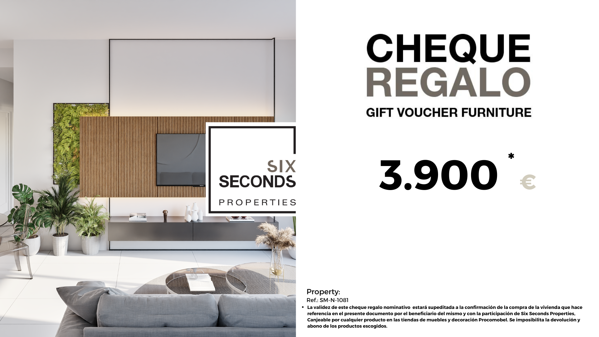 At Six Seconds Properties we help you turn your new property into the home of your dreams, giving you a gift voucher worth €3,900 worth of furniture and a technical visit to the property, where our technical team will advise you on the possibilities of improving the home. Totally free!