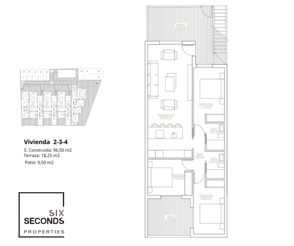At Six Seconds Properties (965059685), we'll help you turn your new property into the home of your dreams by giving you a € 3,200 furniture gift voucher and a technical visit to the home , where our technical team will advise you on home improvement options. Completely free!