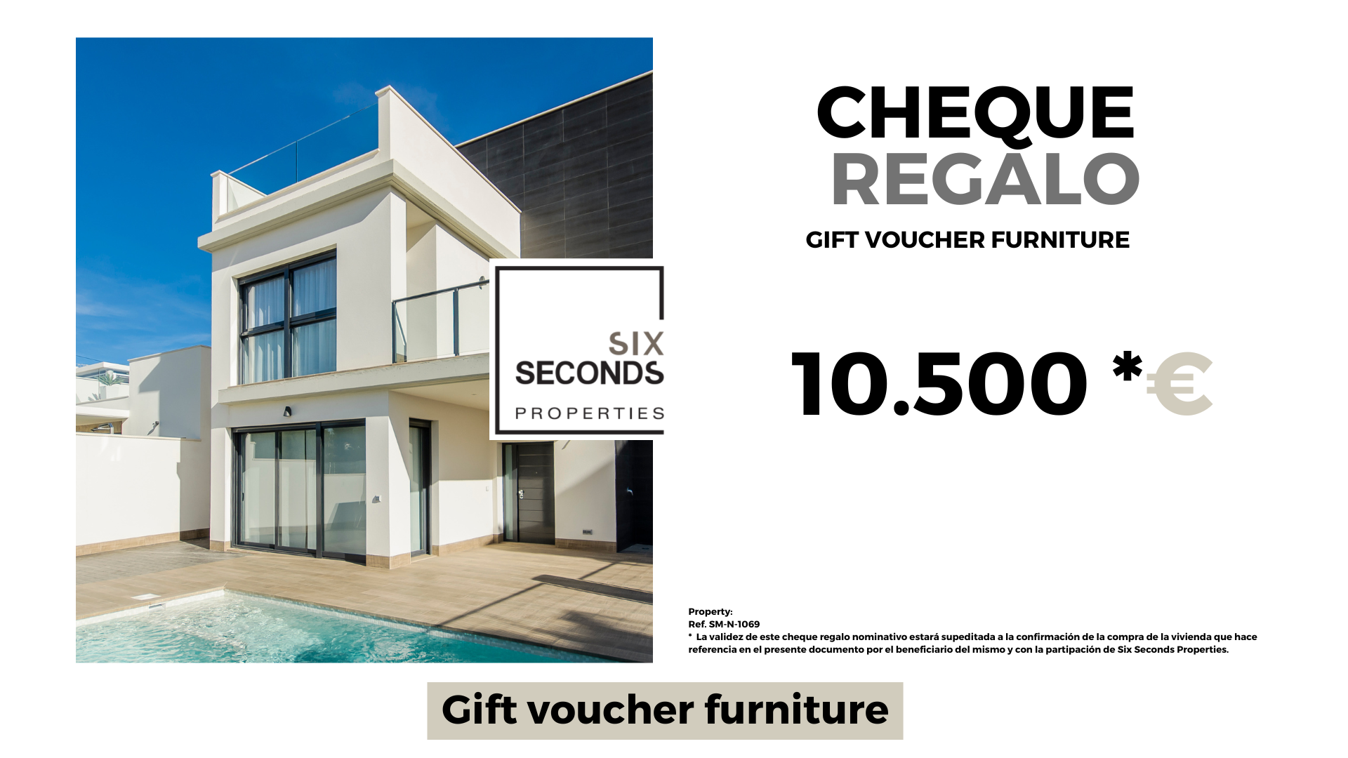 At Six Seconds Properties (965059685) we help you turn your new property into the home of your dreams, giving you a furniture gift voucher for €10,500 and a technical visit from the design department to the home, where our technical team will advise you on the possibilities of improvement and decoration of your property. Totally free!!