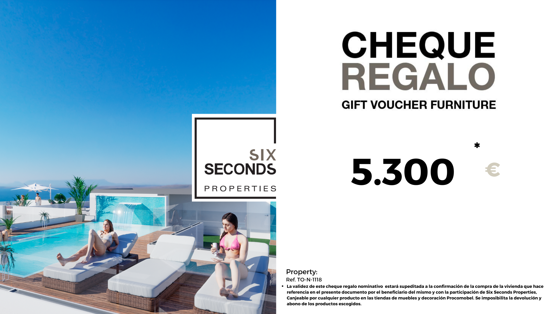 At Six Seconds Properties, we'll help you turn your new property into the home of your dreams by giving you a €5,300 furniture gift voucher and a technical visit to the home, where our technical team will advise you on home improvement options. Completely free!