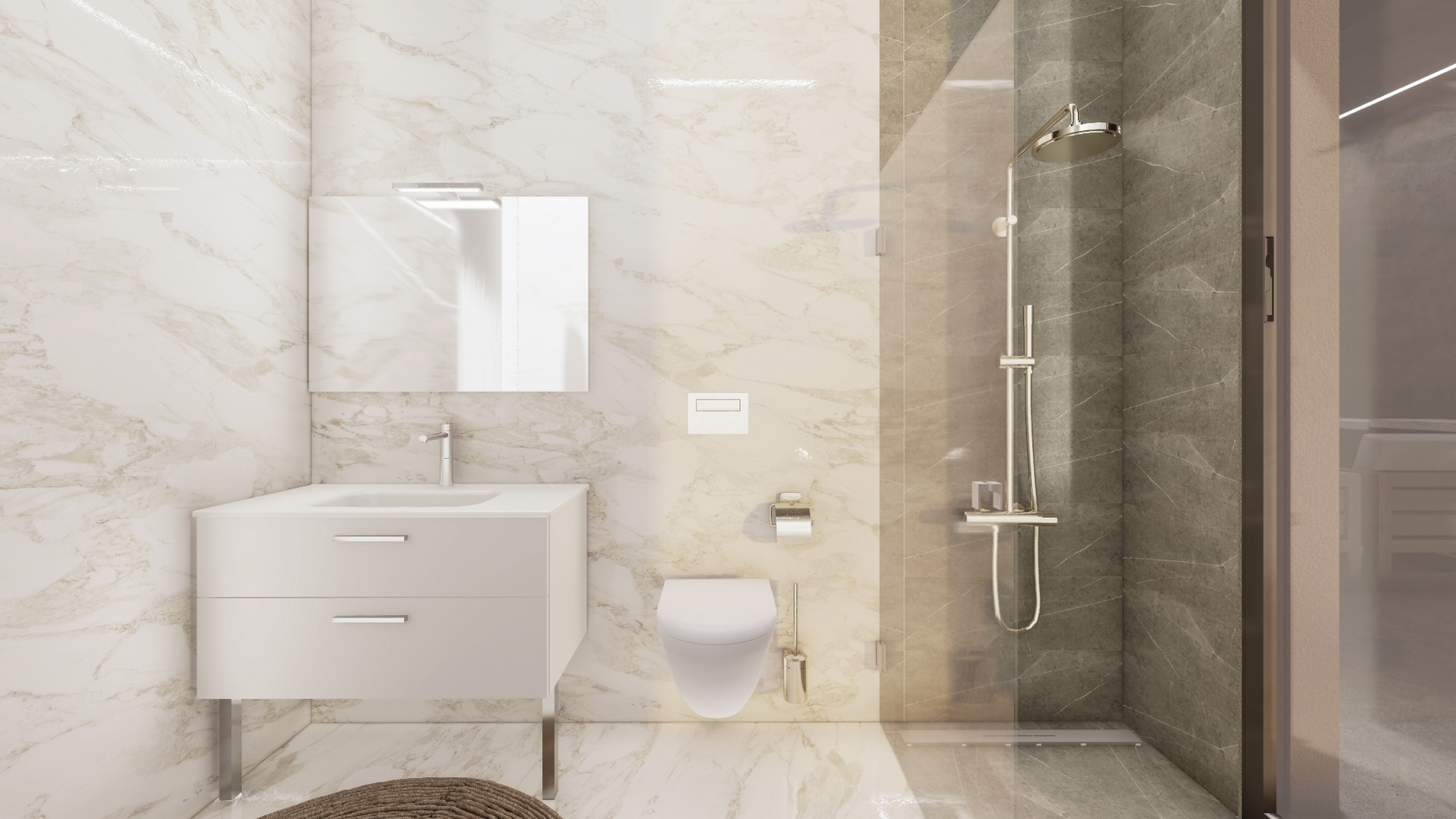 Our villas feature three spacious and bright bedrooms, perfect for accommodating the entire family or entertaining guests in the greatest comfort. Three full bathrooms with high-quality finishes ensure functionality and style in every corner of your home.