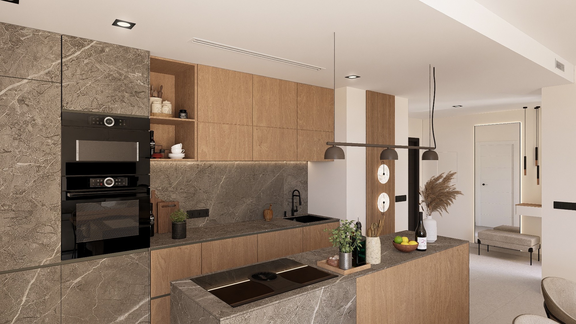 From the moment you walk through the door, you will be greeted by the elegance and security that characterise our properties. Pedestrian access with video intercom ensures peace of mind, while the motorised metal gate adds a touch of modernity and exclusivity.
