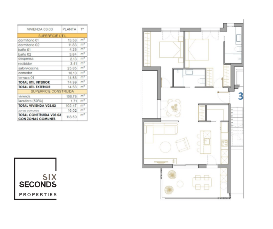 At Six Seconds Properties (965059685) we help you turn your new property into the home of your dreams, giving you a gift voucher for € 1.600 in furniture and a technical visit to the home , where our technical team will advise you on the possibilities of improving the property. the House. Totally free!!