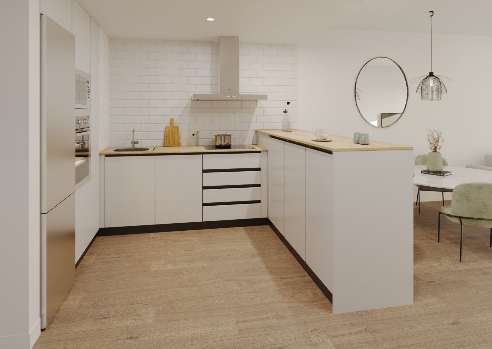 All homes have fully furnished kitchens equipped with a ceramic hob, extractor hood and oven, ensuring that you have everything you need from day one. In addition, they are equipped with air conditioning with a heat pump, hot water by aerothermal energy, smooth white paint on walls and ceiling, and PVC windows and doors with double glazing, guaranteeing an energy-efficient home. The bedrooms include built-in wardrobes, providing practical and functional storage space. The ground floor homes offer private gardens, while the duplexes have large terraces, perfect for enjoying the outdoors and the natural surroundings.