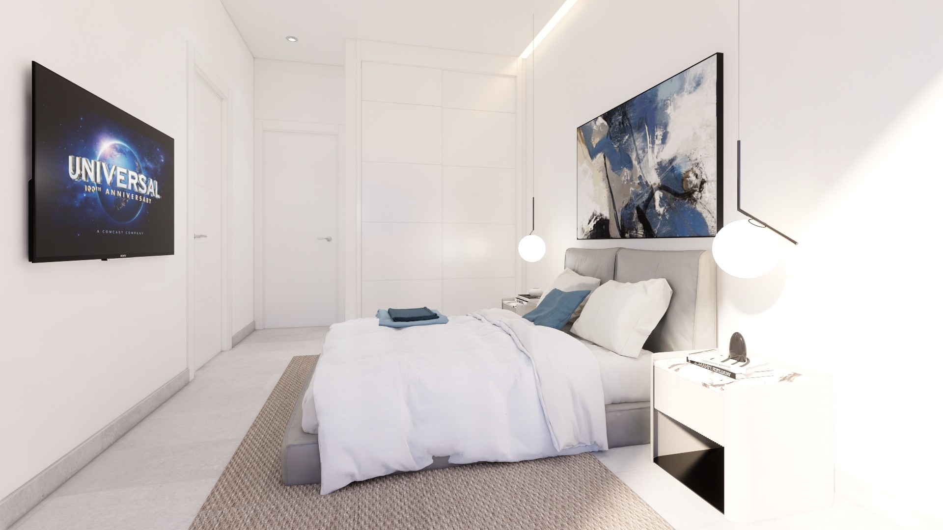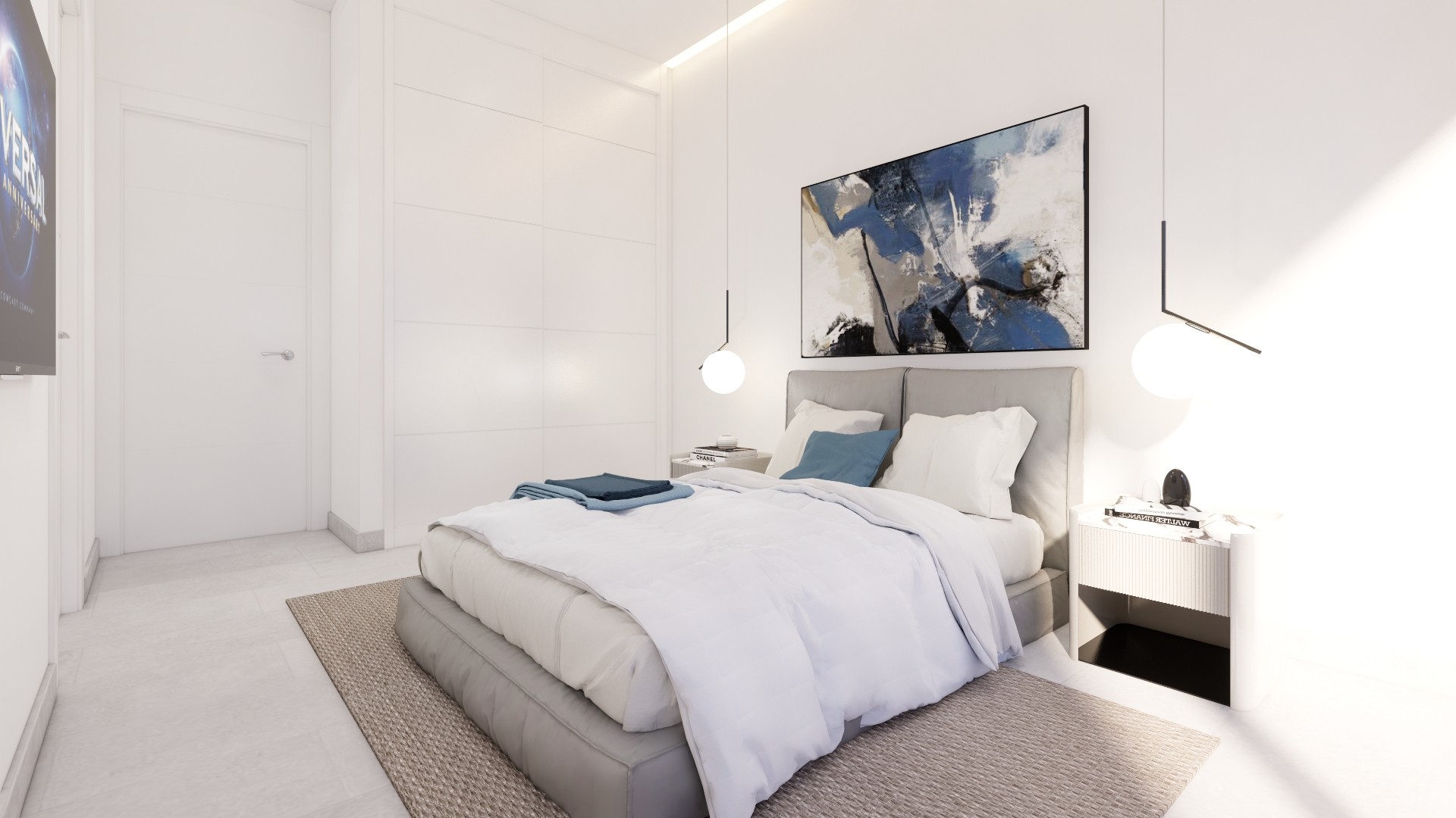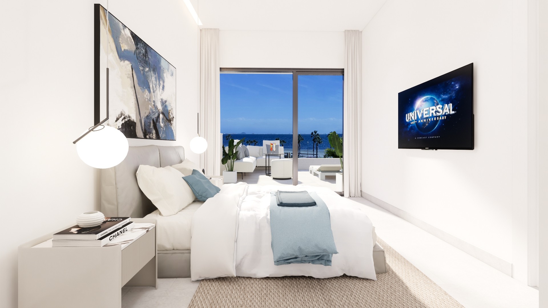 Each villa sits on a 300 m² plot and features three spacious bedrooms, designed to maximize natural light and provide a relaxing environment. Large balconies off each bedroom and terraces provide uninterrupted sea views. The properties also include three bathrooms and a spacious rooftop solarium, where a Jacuzzi invites you to enjoy the best views in total privacy. These villas also come equipped with air conditioning and a high-end kitchen, fully equipped with state-of-the-art appliances, perfect for those who value comfort and functionality in their daily lives.