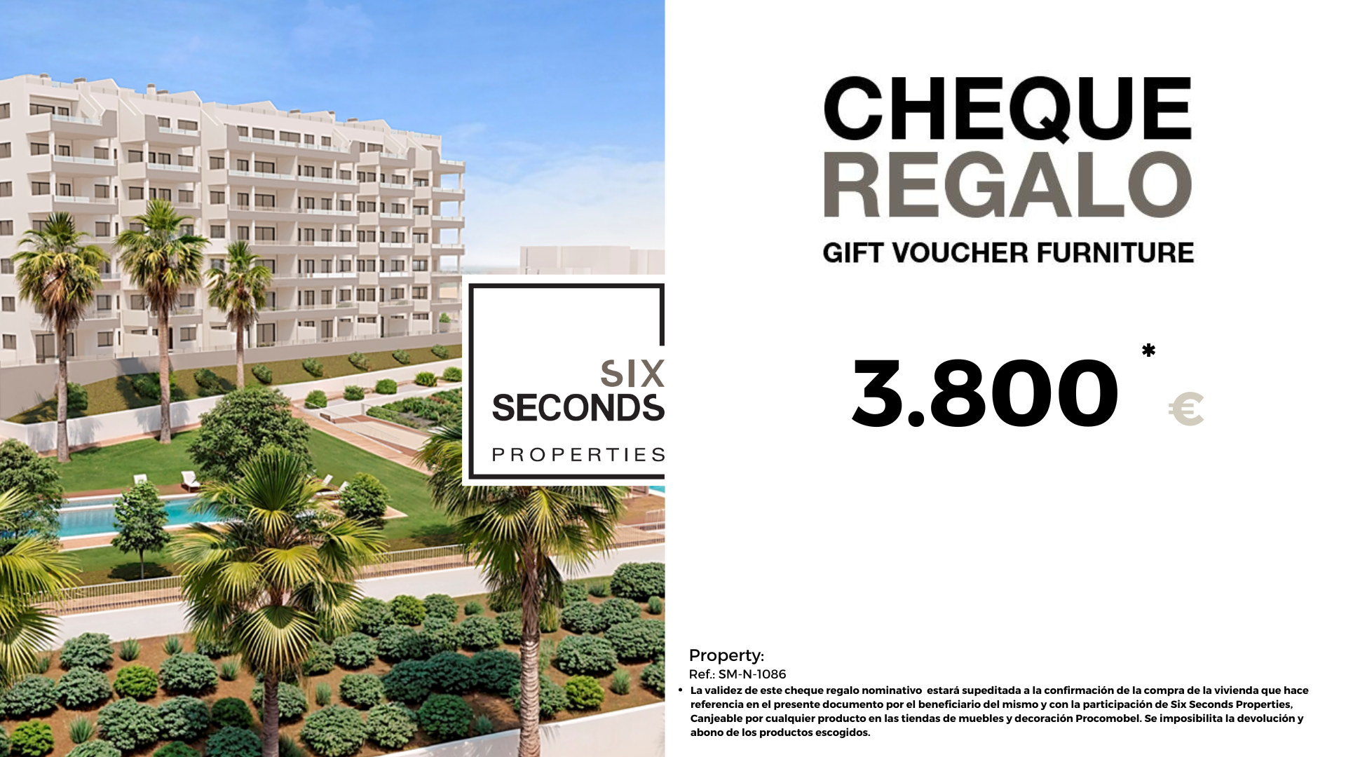 At Six Seconds Properties we help you turn your new property into the home of your dreams, giving you a gift voucher worth €3,800 worth of furniture and a technical visit to the property, where our technical team will advise you on the possibilities of improving the home. Totally free of charge!!